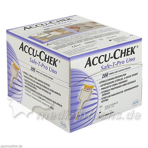 Оригинальный немецкий препарат Accu-Chek Safe-T-Pro Uno II, 200 ST.