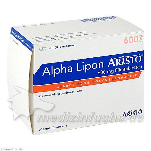 Оригинальный немецкий препарат Alpha Lipon Aristo 600mg Filmtabletten, 100 ST.