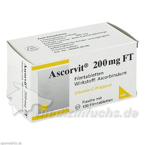 Оригинальный немецкий препарат Ascorvit 200mg FT, 100 ST.