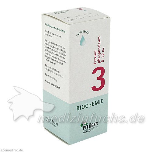 Оригинальный немецкий препарат Biochemie Pflüger Nr. 3 Ferrum phosphoricum D 12, 100 ML.