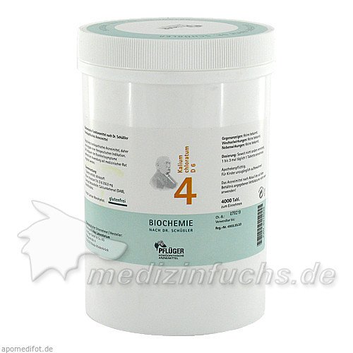 Оригинальный немецкий препарат Biochemie Pflüger Nr. 4 Kalium chloratum D 6, 4000 ST.