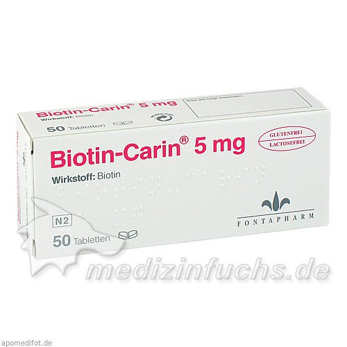 Оригинальный немецкий препарат Biotin Carin 5mg Lactose-Glutenfrei, 50 ST.