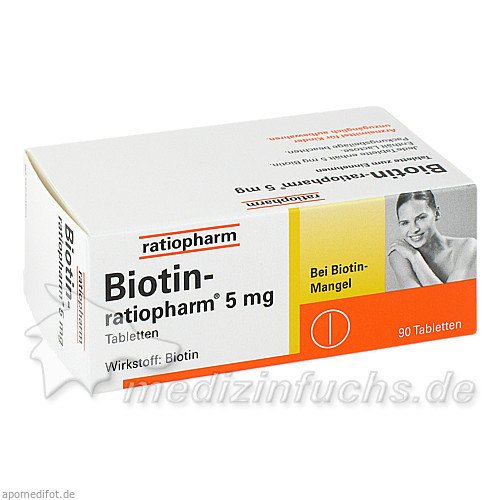 Оригинальный немецкий препарат Biotin-ratiopharm 5 mg, 90 ST.