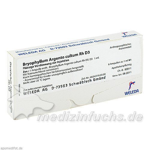 Оригинальный немецкий препарат BRYOPHYLLUM ARG CUL RH D 3, 8X1 ML.