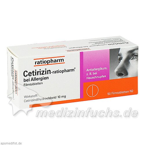 Оригинальный немецкий препарат Cetirizin-ratiopharm bei Allergien 10 mg Filmtabl., 50 ST.
