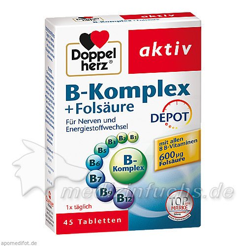 Оригинальный немецкий препарат Doppelherz B-Komplex + Folsäure, 45 ST.