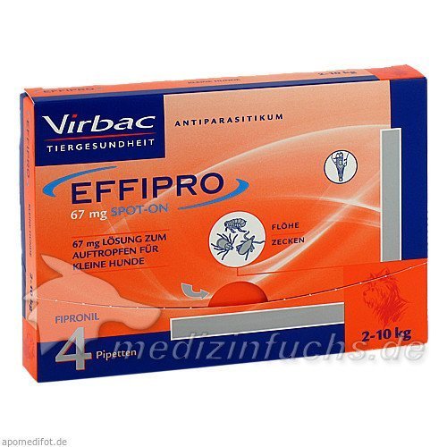 Оригинальный немецкий препарат EFFIPRO 67 mg Pip.Lsg.z.Auftropf.f.kl.Hunde, 4 ST.