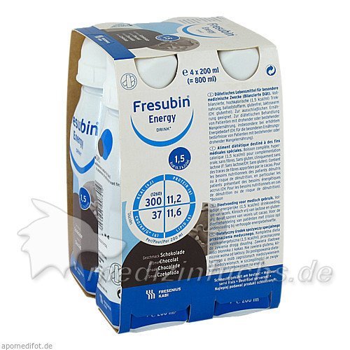 Оригинальный немецкий препарат Fresubin energy DRINK Schokolade Trinkflasche, 4X200 ML.