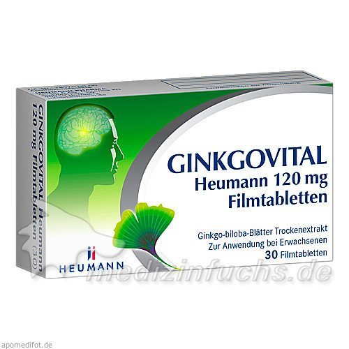 Оригинальный немецкий препарат Ginkgovital Heumann 120 mg Filmtabletten, 30 ST.