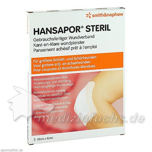 Оригинальный немецкий препарат HANSAPOR steril Wundverband 8x10 cm, 5 ST.