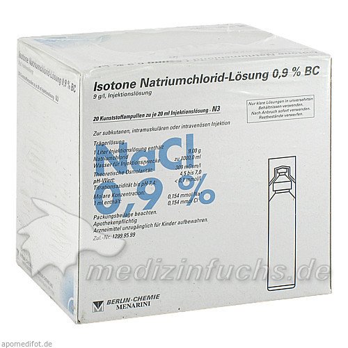 Оригинальный немецкий препарат Isotone NaCl Lösung 0.9% BC Plast, 20X20 ML.