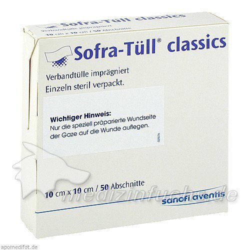 Оригинальный немецкий препарат Sofra-Tüll classics Abschnitte 10x10cm, 50 ST.