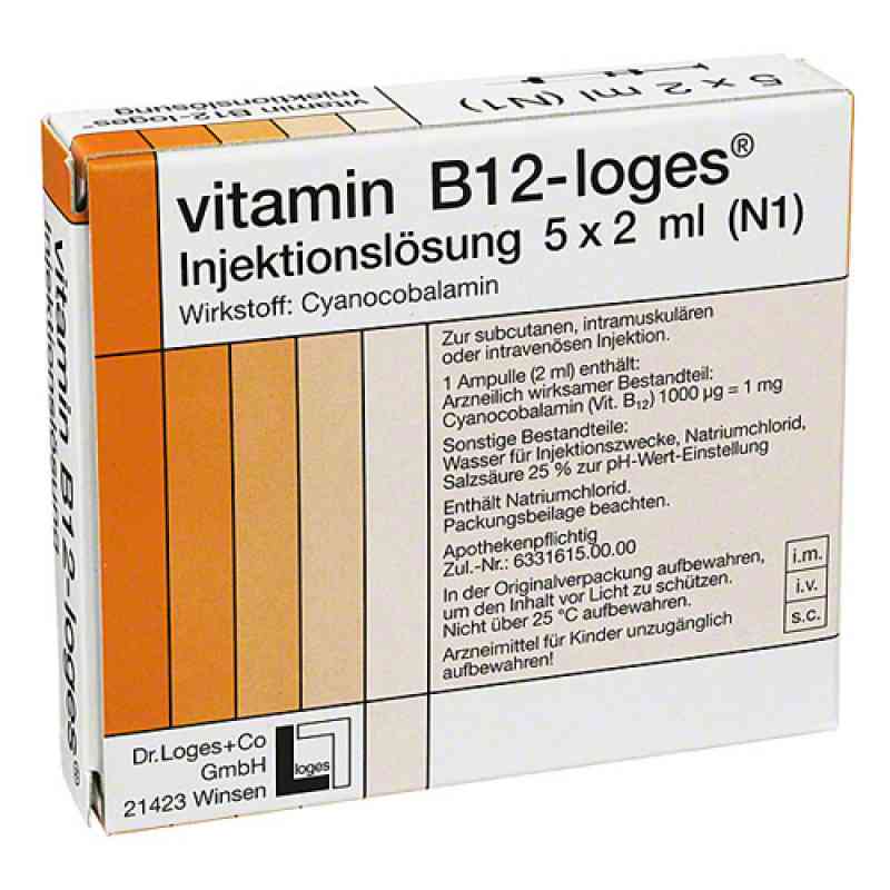 Оригинальный немецкий препарат Vitamin B12 Loges Injektionslösung Ampullen (5X2 ml).